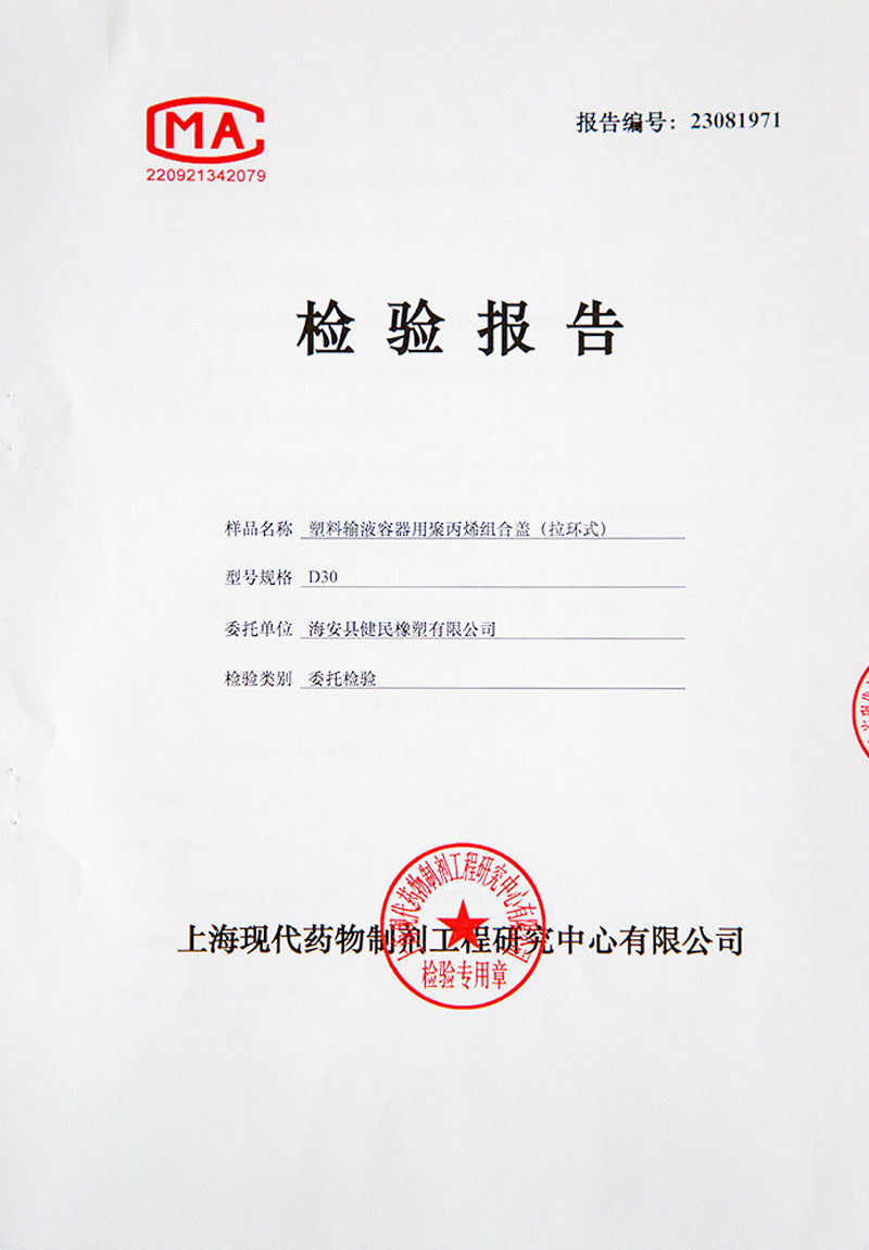 >> 塑料輸液容器用聚丙烯組合蓋 (拉環式)檢驗報告
