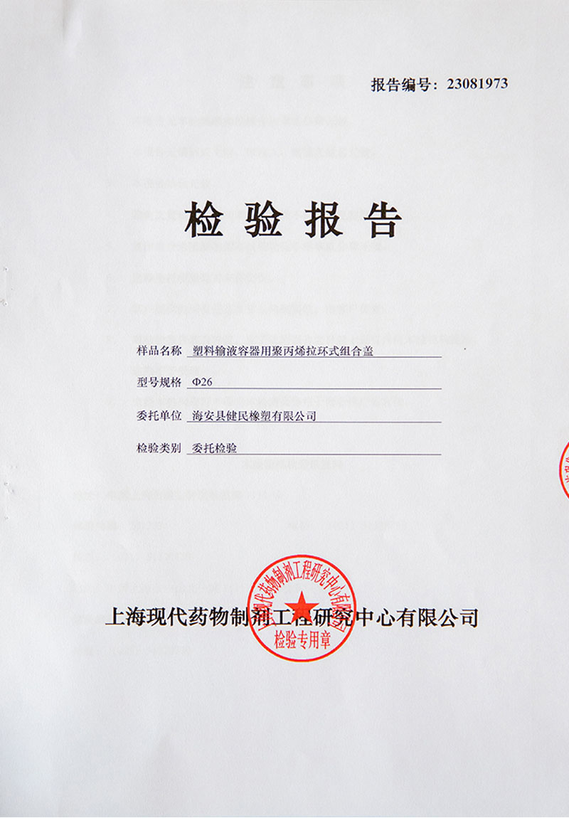 >> 塑料輸液究器用聚丙烯拉環式組合蓋檢驗報告